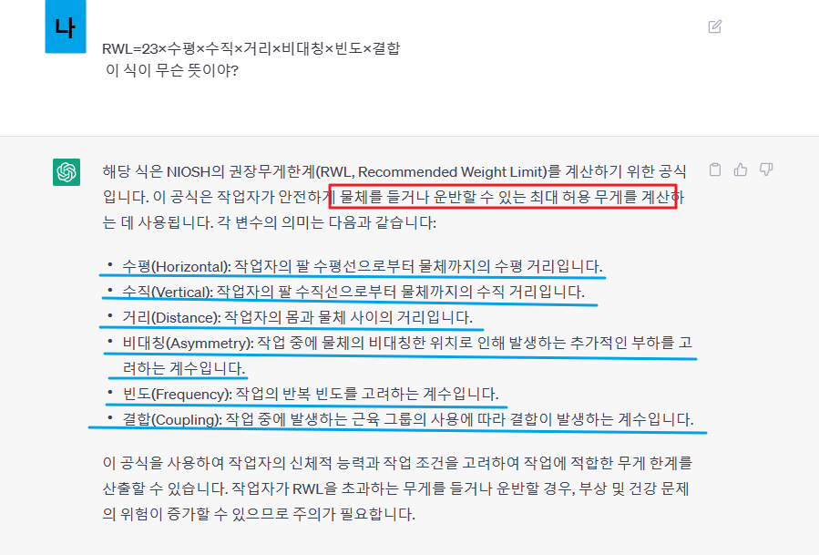 RWL=23×수평×수직×거리×비대칭×빈도×결합