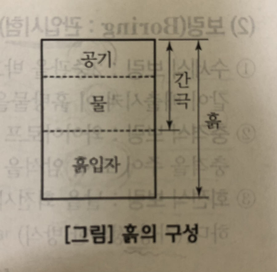 흙의 구성을 알아야 위에 언급된 간극비, 함수비, 포화도, 간극률을 알 수 있다. 함수비만 용량이고 그 외에는 다 용적이다.