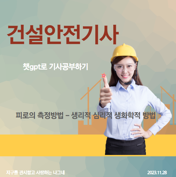 피로의 측정방법 3가지에 대해 적으시오. : 생리적 방법/심리학적 방법/ 생화학적 방법