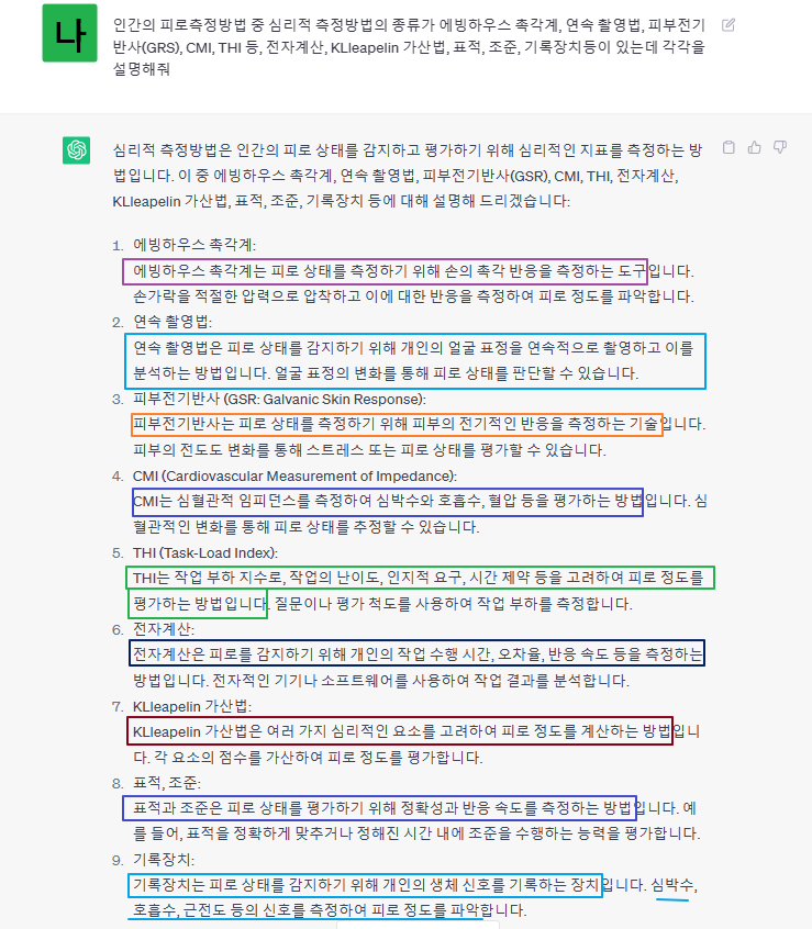 챗gpt에게 각각의 측정 방법에 대해 물어보았다.