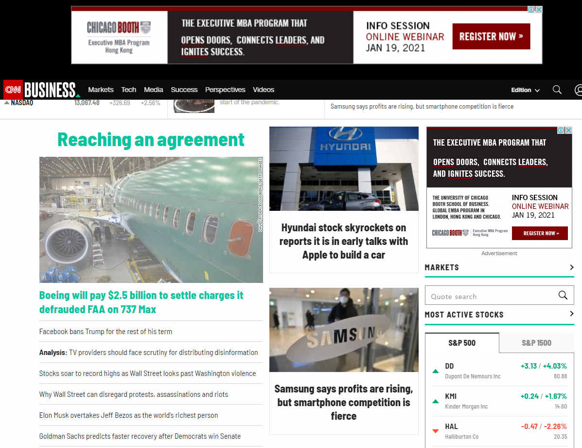 cnn의 비지니스 메인뉴스에 동시에 떠 있는 것을 보는 것은 반가운 일이다.