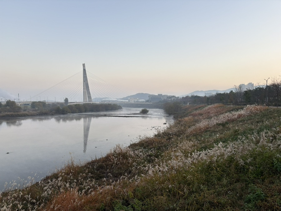근데 이렇게 새로운 시작에 다시 아름다운 남강의 광경을 바라보고 있는거야.