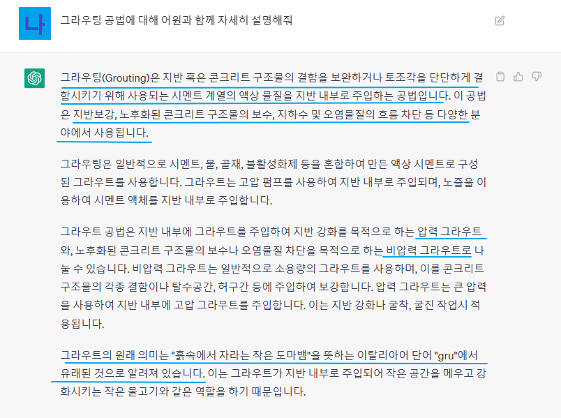 그라우팅 공법에 대하여, 그 어원도 척척 찾아주는 챗gpt.